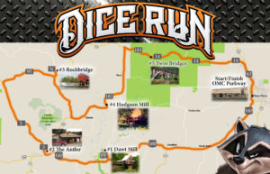 The Dice Run is open to motorcycles, cars & trucks. Cost to enter is $20 per vehicle, and includes one score card. Riders can begin the route any time after registration, which will be 9 to 10:30 a.m. at OMC Parkway Center. Additional scoring cards can be purchased for $5 each. Event T-shirts will be available for purchase at registration.