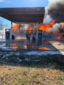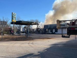 Several Fire Departments were called to a structure fire at the Valero Station in Myrtle this afternoon. The Gas station was a total loss but there were no injuries reported. The Myrtle, Alton, Thayer, Rover, Ravenden Springs and Dalton fire departments all assisted in fighting the fire. At this time the cause of the fire has not been released.
