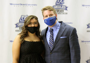 NEW STUDENT GOVERNMENT ASSOCIATION (SGA) officers for the 2021-2022 academic year were elected recently by students at Missouri State University-West Plains, and the new officers took their oaths of office during the annual Celebration of Leaders student awards ceremony April 29 at the West Plains Civic Center. Logan Brewer, right, Ozark, was elected president, and Sophie Burns, Granite City, Illinois, was elected vice president. (Missouri State-West Plains Photo)