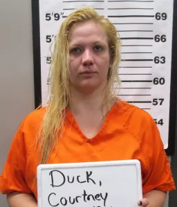 On July 16th, the Douglas County Sheriff’s Office received information that there was a female walking down the road, in the Plainview area of West 76, partially clothed. Deputy Joe Dering responded and located the female walking down the road. Deputy Dering advised the female to stop, but she continued backing away from Deputy Dering. At different points the female would advance towards Deputy Dering and then back away towards the heavy flow of traffic. 26-year-old Courtney Duck was arrested and witnesses advised she had gotten out of a vehicle and tossed the syringe into the ditch. Deputy Dering located the syringe, which did not have a needle, and field tested positive for methamphetamine. Duck was transported to the Douglas County Sheriff’s Office and has been charged with Possession of a Controlled Substance (Class D Felony), Resisting/Interfering with Arrest, Detention, Stop (Class A Misdemeanor), and Unlawful Possession of Drug Paraphernalia (Class D Misdemeanor)