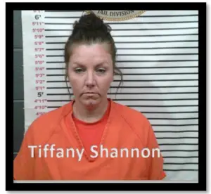 Tiffany Shannon was arrested on a probation violation on an original charge of felony Possession of a Controlled Substance, bond set at $10,000. She was also taken into custody on a warrant issued by the Missouri Department of Corrections – Probation and Parole District 13 for Failure to Report and Failure to Report New Address.