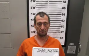 A warrant was issued for Dobbs for Possession of a Controlled substance-methamphetamine, endangering the welfare of a child, operating a vehicle on a highway without a valid license, possession of drug paraphernalia, failure to register a motor vehicle, no insurance, and failure to equip the vehicle with 2 approved headlights. Bond was set at $2500 cash only. Dobbs has since posted bond.