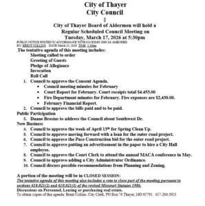Thayer City Council meets tonight